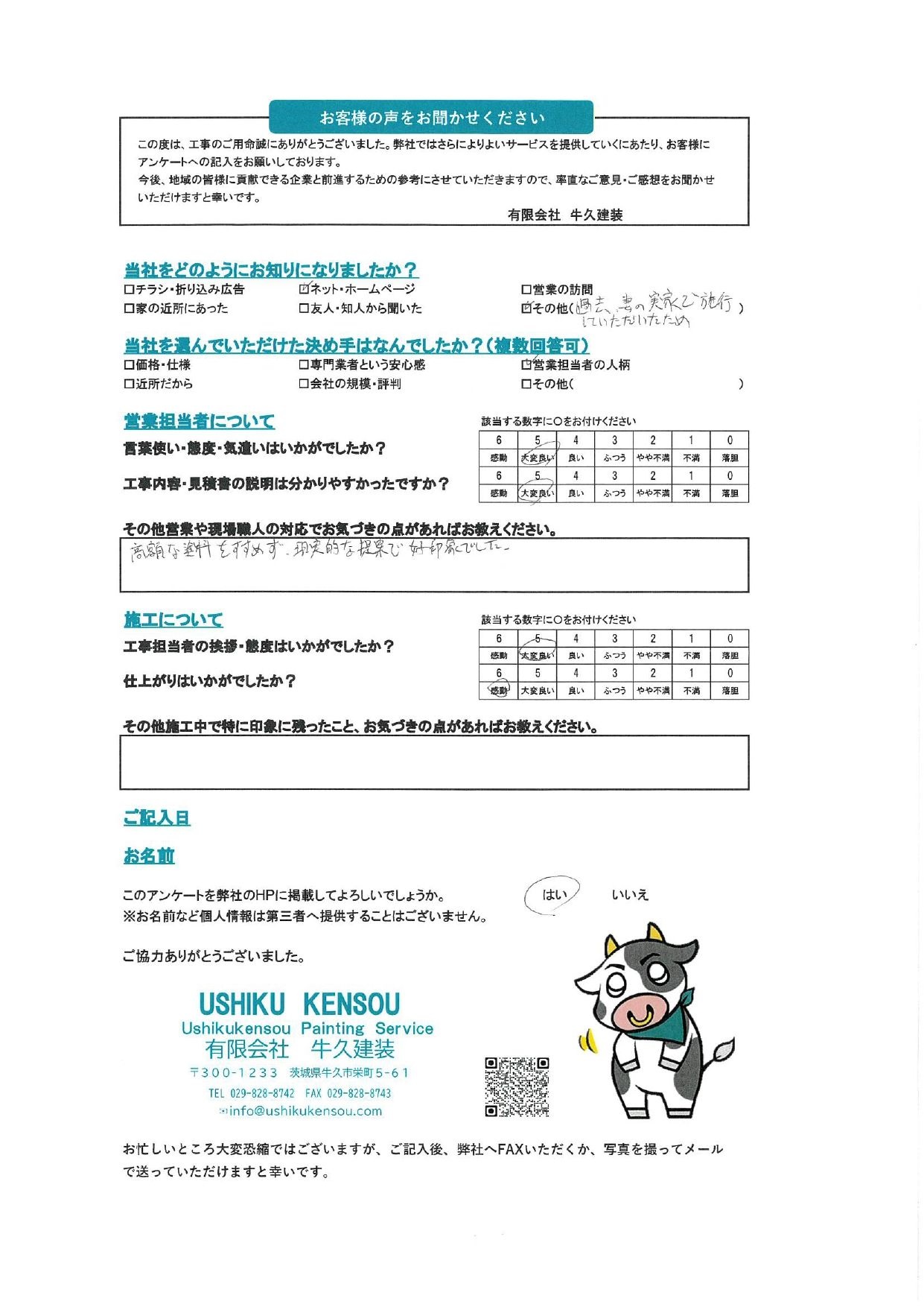 高額な塗料を勧めず、現実的な提案で好印象でした。
