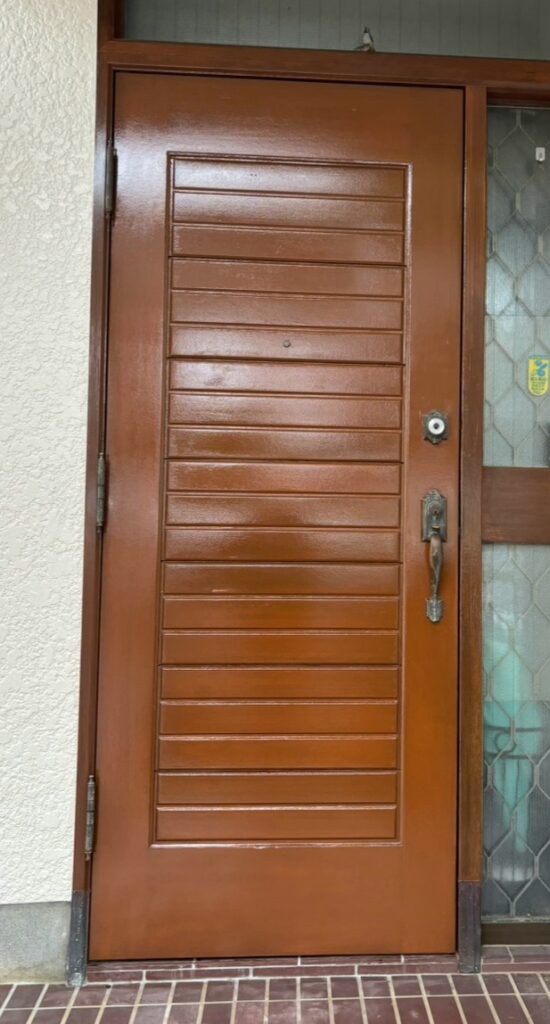また、劣化していた玄関ドアは、剥離剤で古い塗膜をしっかり除去し、電動ペーパーで下地を平滑に整えた上で塗装し、色ムラなく丁寧に仕上げ、新品同様の美観と耐久性を実現します。
