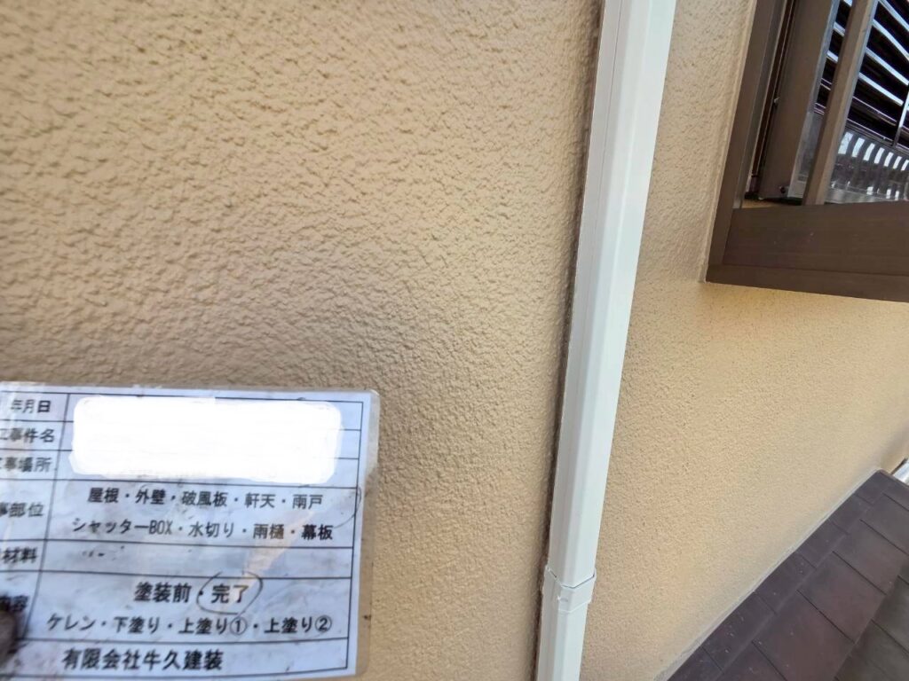 外壁は高圧洗浄で汚れをしっかり落としたうえで、下塗り・中塗り・上塗りの3工程で丁寧に仕上げました。塗膜をしっかり形成することで、外壁を保護しながら防水性の向上と美観の回復につながっています。
